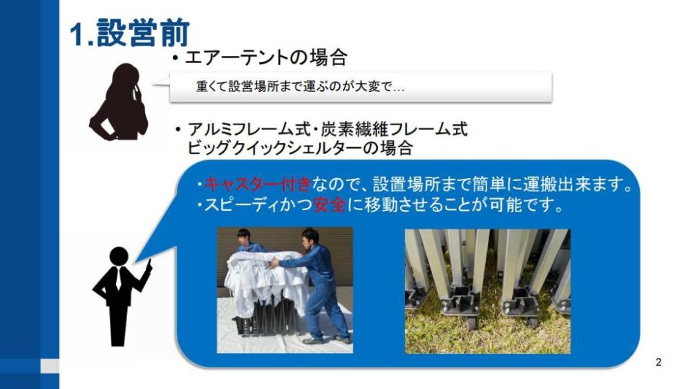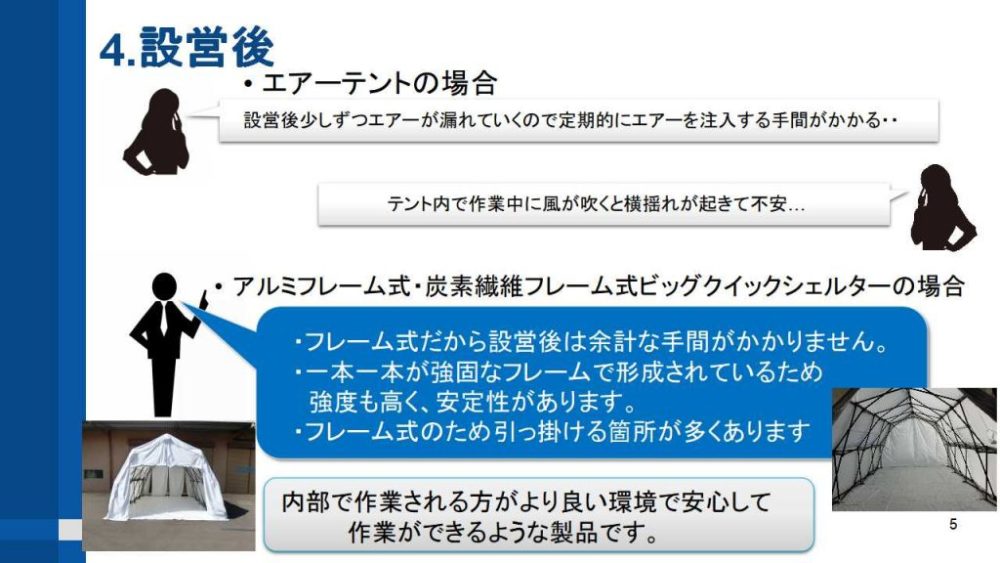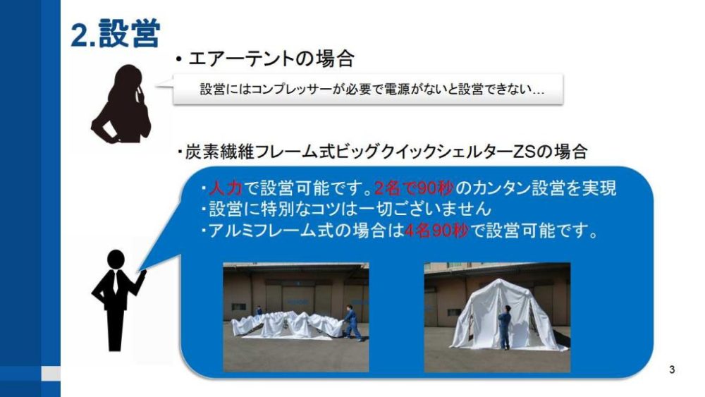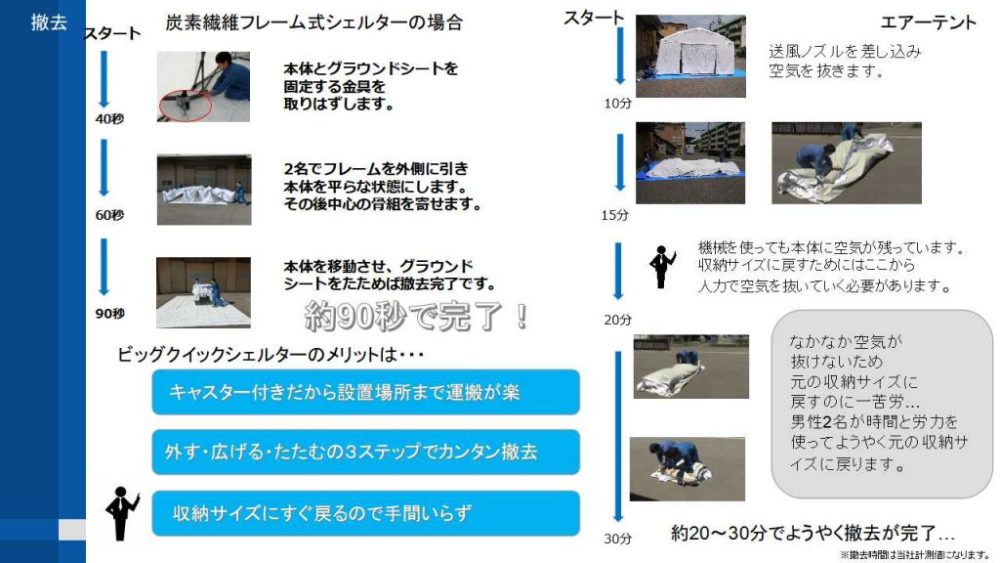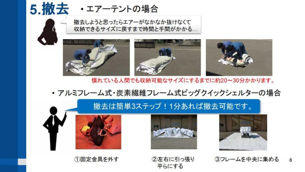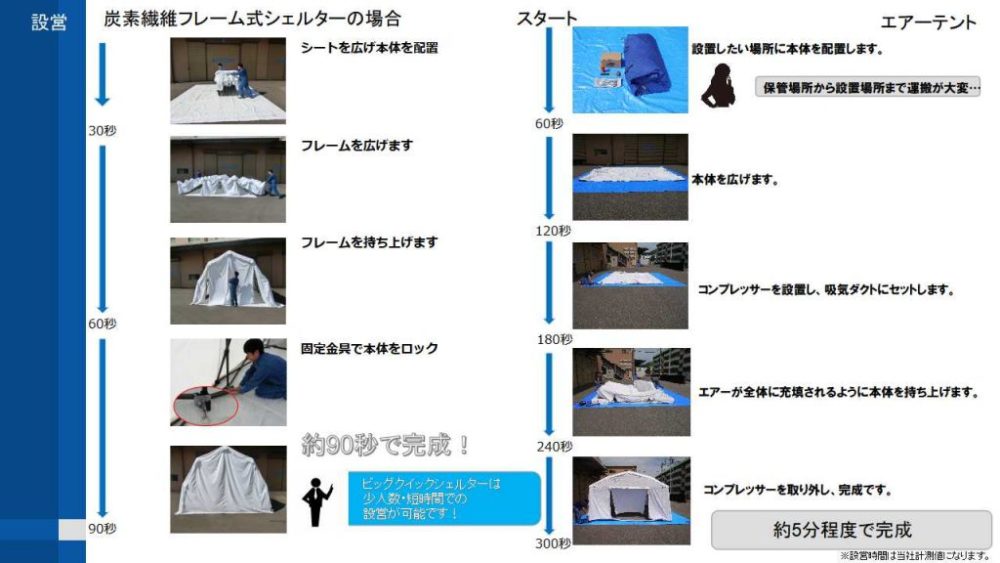 その中で特にご質問の多くありましたエアーテントとフレーム式シェルターの違いについてご説明致しました資料を掲載いたします。