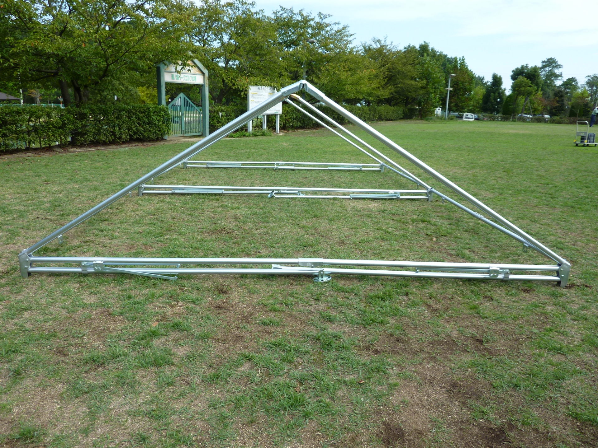 3分割(2間×3間)で構成されるワンタッチ式の便利さはそのままに、全てのパイプを38.1φ(通常31.8φ)まで大きくしました。このことにより大幅に強度が上がっています。
