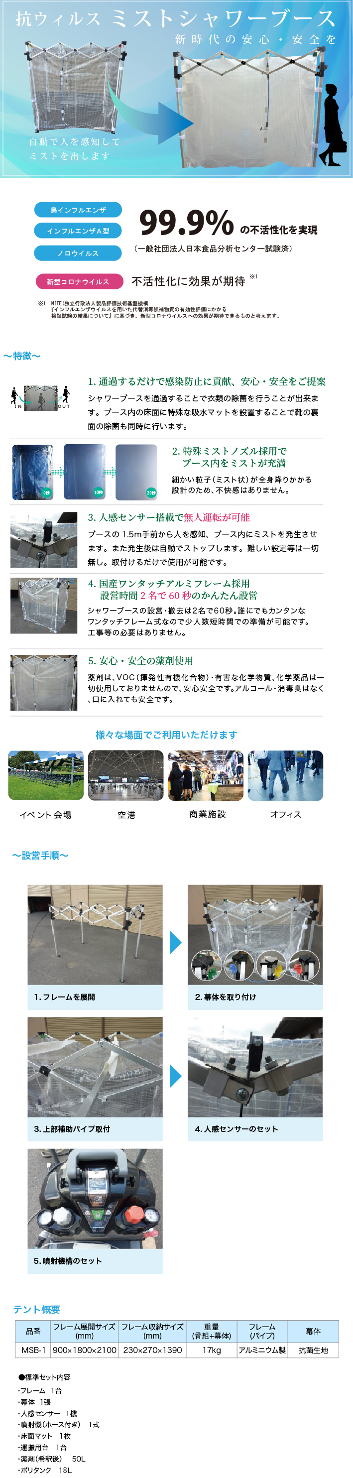 1.通過するだけで感染防止に貢献、安心・安全をご提案シャワーブースを通過することで衣類の除菌を行うことができます。