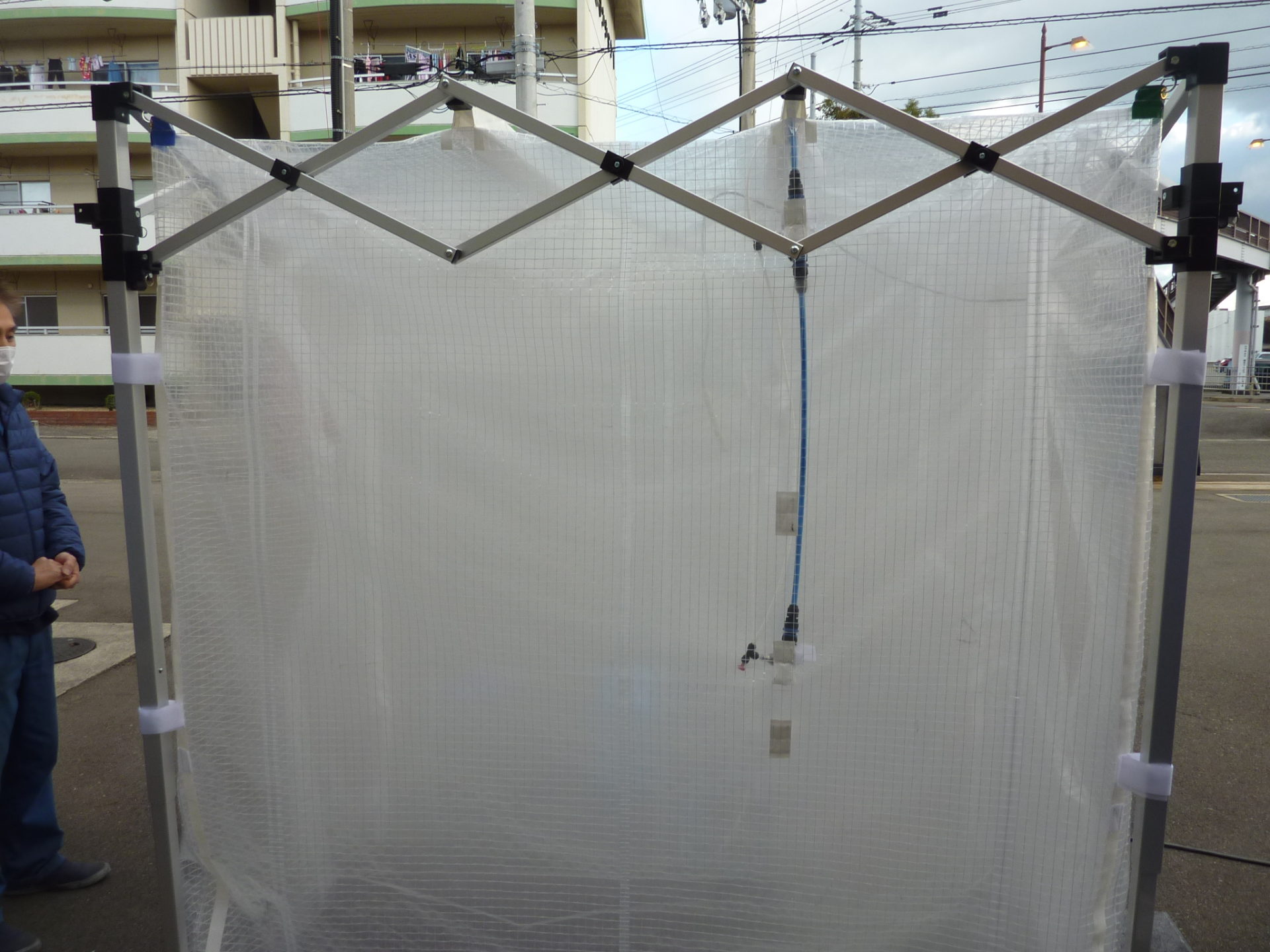 ブースの1.5m手前から人を感知、ブース内にミストを発生させます。