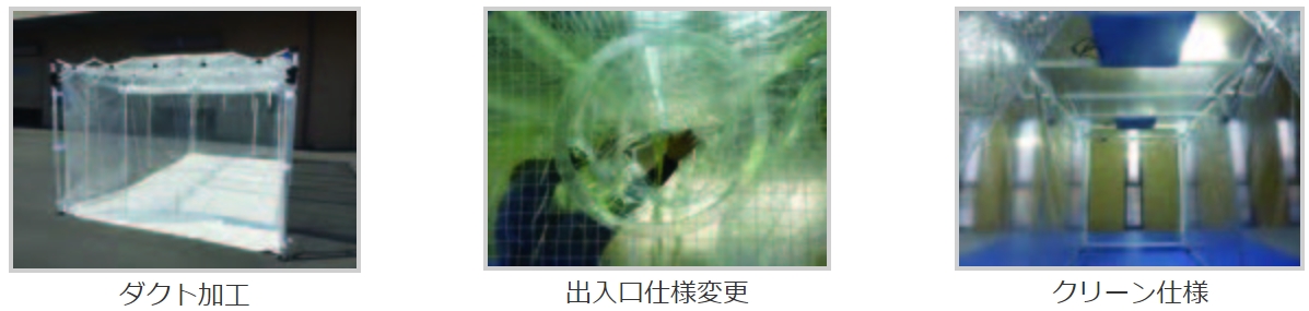 防塵用・塗装用・クリーン用・スポットクーラーを用いての温度調節用など、使用目的に合わせた活用が可能です。