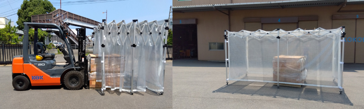 間口方向・奥行方向へ2段階に広げて設置するため、設置したい場所に物がある状態でも設営可能です。