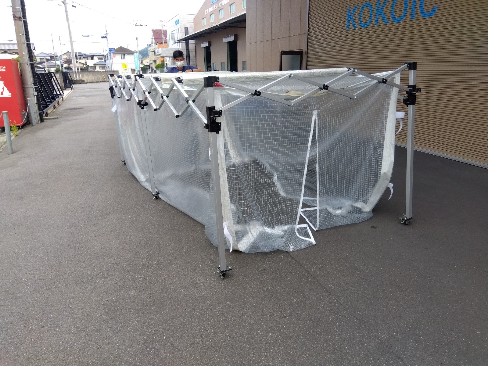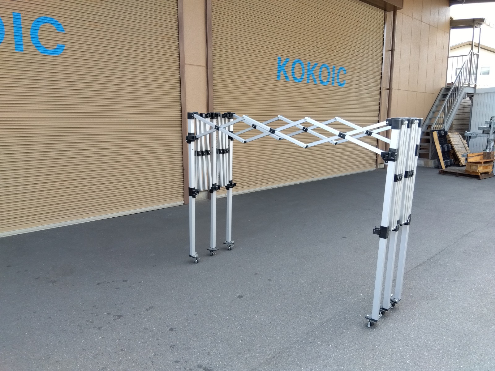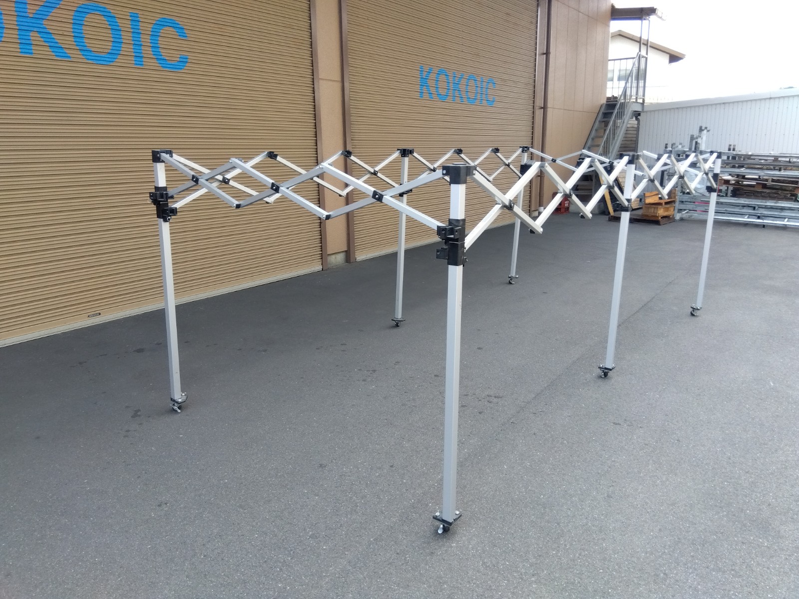 支柱下部のキャスター取付により設営した状態でも移動が可能です。