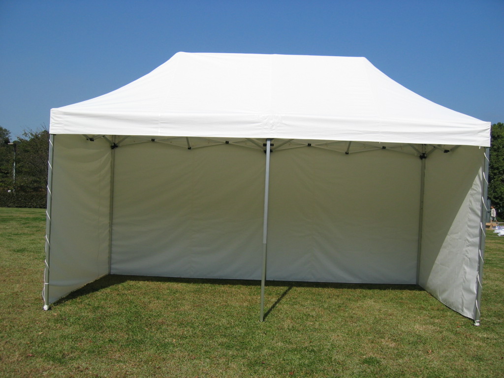 この製品はあくまでも短時間でのご使用を目的とした仮設テントです。必ず風対策(専用ウェイト、クイ、ロープ等)を行い、長時間や悪天候、もしくはそれらが予測される場合はご使用をお控えください。正しく安全にお使い頂くために、ご使用の前には必ず「取扱説明書」をよくお読みください。