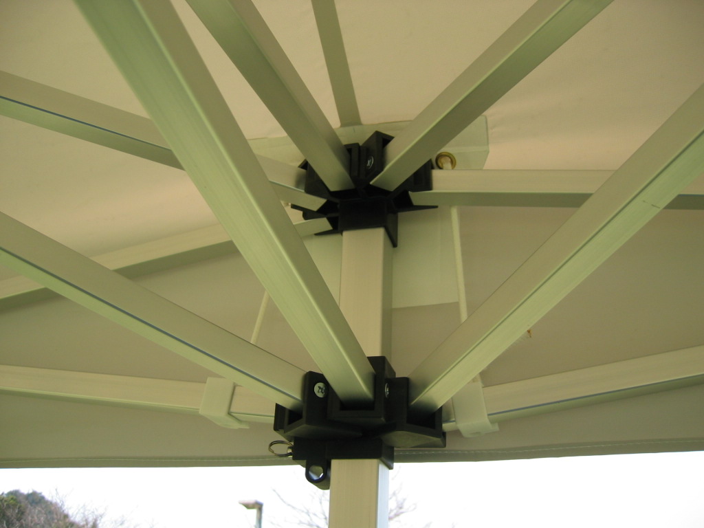 テントの天幕・側幕の固定はTSクリップの採用で脱着が誰にでも簡単に行えます。