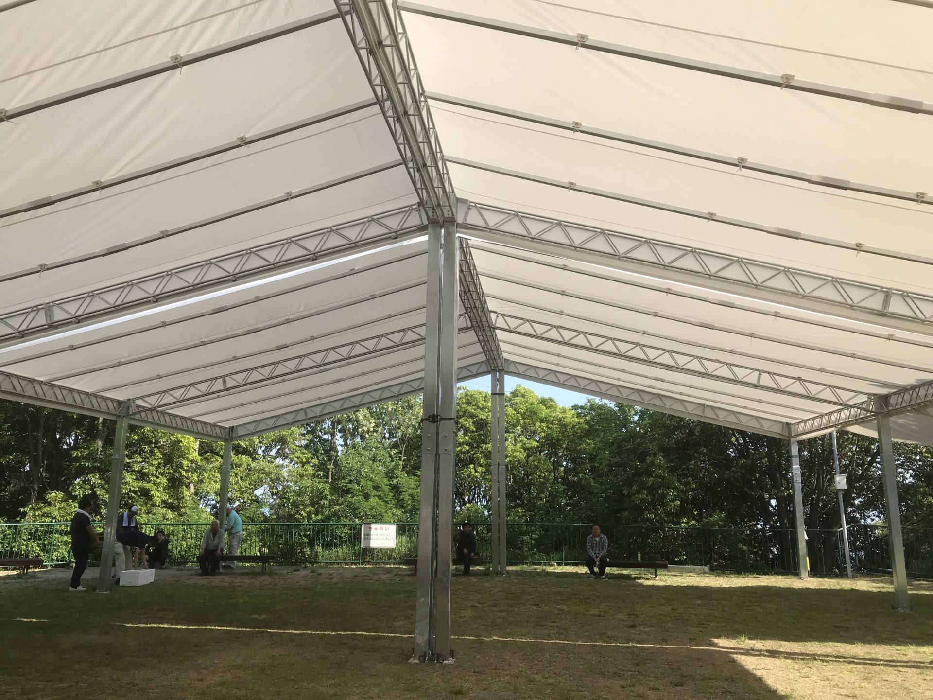 10×10Mのテントを15×15Mの大きさに、また7×10Mのステージテントに少しのオプション部材で組み替えられます。