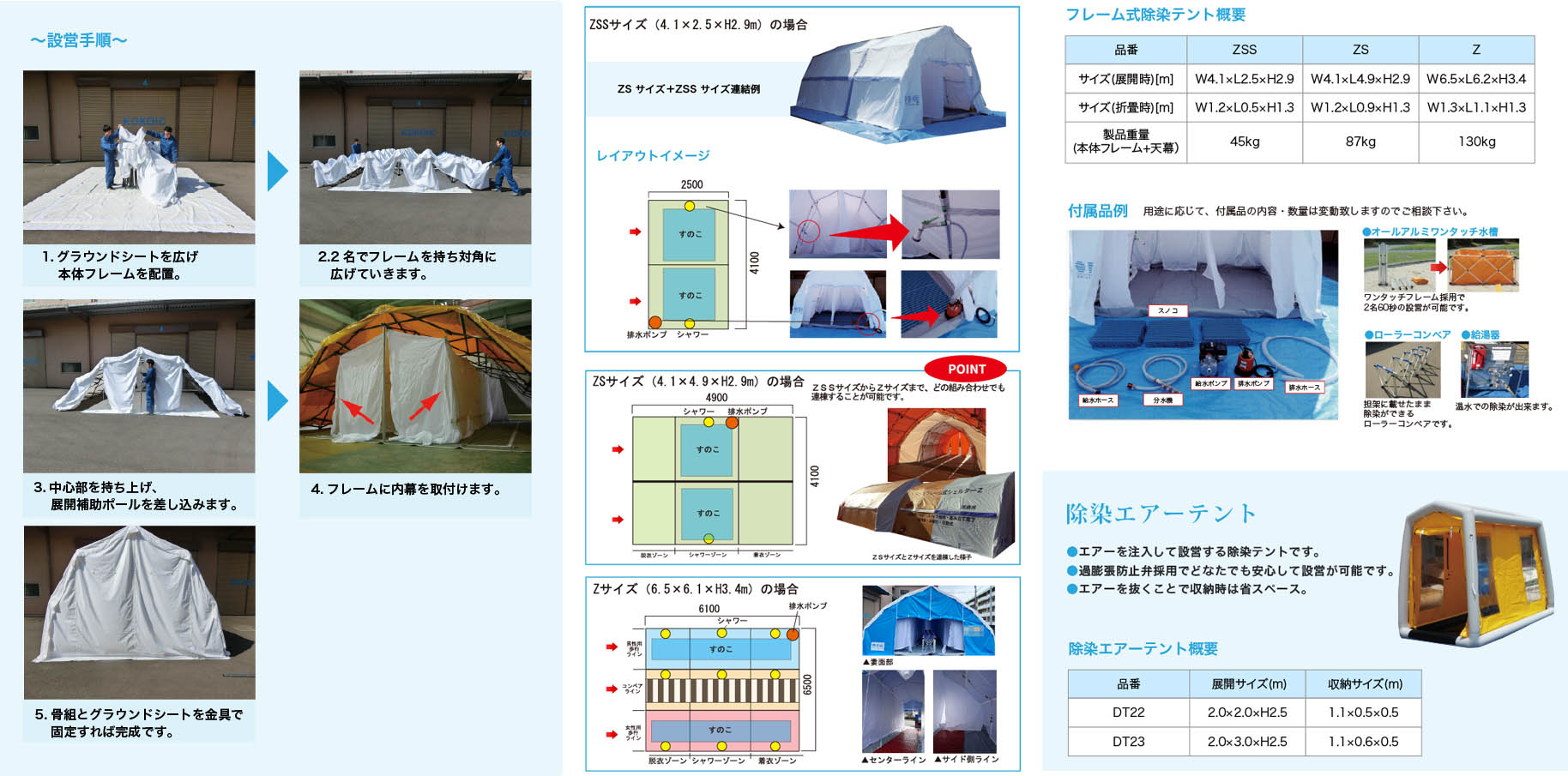 除染テントZSSとZSサイズ同士でテントの連棟が可能。