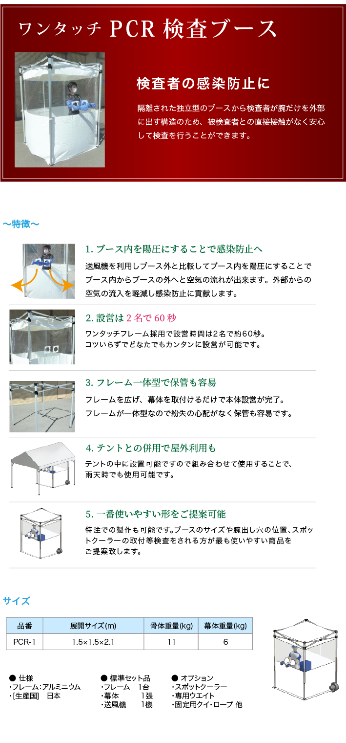 1.ブース内を陽圧にすることで感染防止へ送風機を利用しブース外と比較してブース内を陽圧にすることでブース内からブースの外へと空気の流れができます。