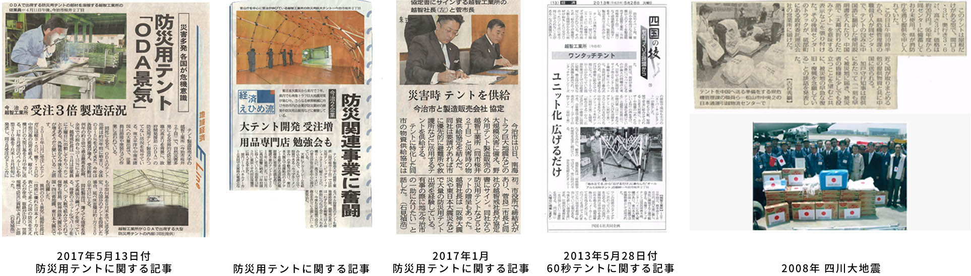 当社のテントはそのクオリティの高さから、各国のODA(政府開発援助)にて採用されています。支柱は通常のパイプの4倍の強度が特徴で、ユニット式で緊急時にもすぐに組み立てられる、当社の700Nシリーズが特に注目されています。越智工業所だけの、オリジナル製品です。