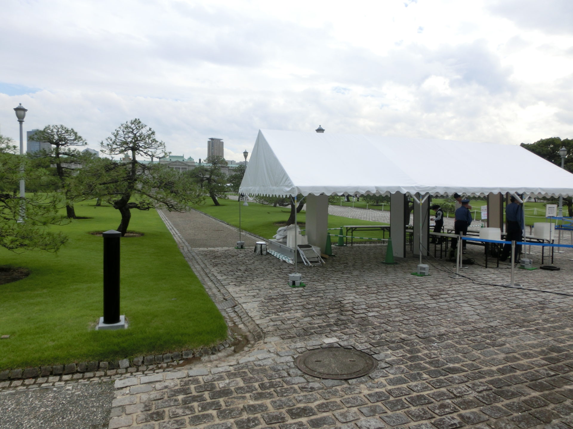 この迎賓館正門、西門にて弊社のスーパーキングE-テント700Nシリーズが多数使用されています。